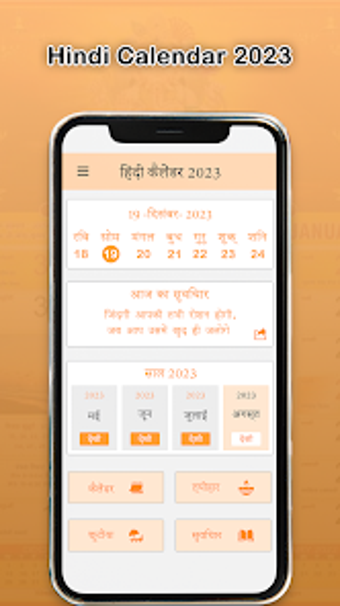 تطبيق هندي كالندر 2023 هو تطبيق مجاني لنظام الأندرويد تم تطويره من قبل شركة سبليت لاب. إنه تطبيق للتقويم الهندي يوفر تفاصيل يومية لجميع أشهر العام. يتضمن التطبيق جميع الأعياد والعطلات والأفكار اليومية للعام. باستخدام هذا التطبيق ، يمكن للمستخدمين العثور بسهولة على الأيام المواتية للعام. تم تصميم التطبيق لعرض الأعياد والعطلات لجميع الأديان.